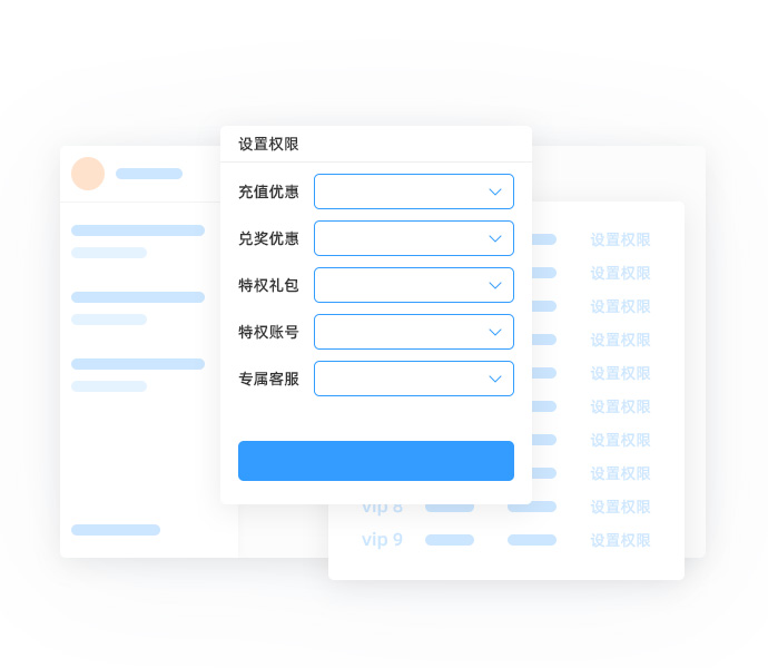 信游游戏平台系统自带10级vip体系,后台可设置各种特权和充值优惠、兑奖优惠、特权礼包、特权账号、专属客服等等功能。打造平台特色的用户服务体系,提高用户黏着度。